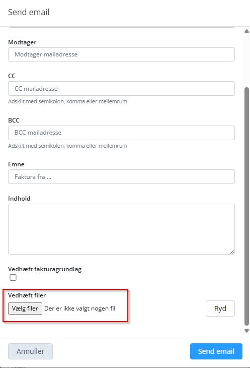 Vedhæftning af filer til faktura